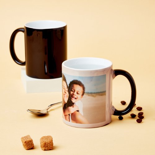 - Customizable magic mug that reveals a hidden design when filled with hot liquid.